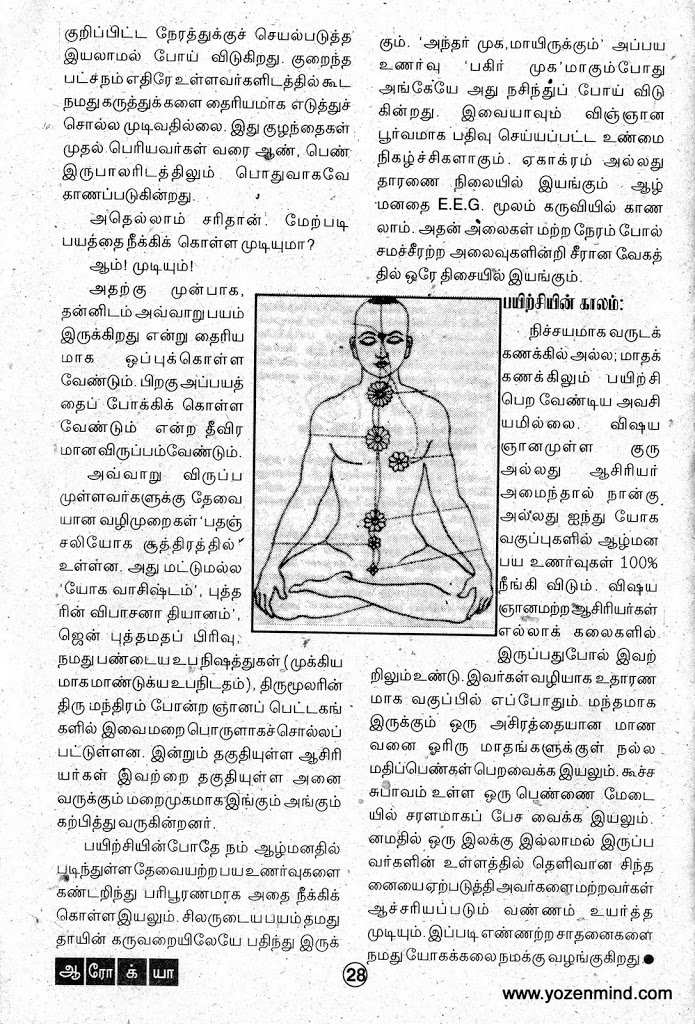Tamil book based on question–answer sessions at the Yozen Meditation Centre. It offers simple clarity on spirituality and a better attitude towards life.